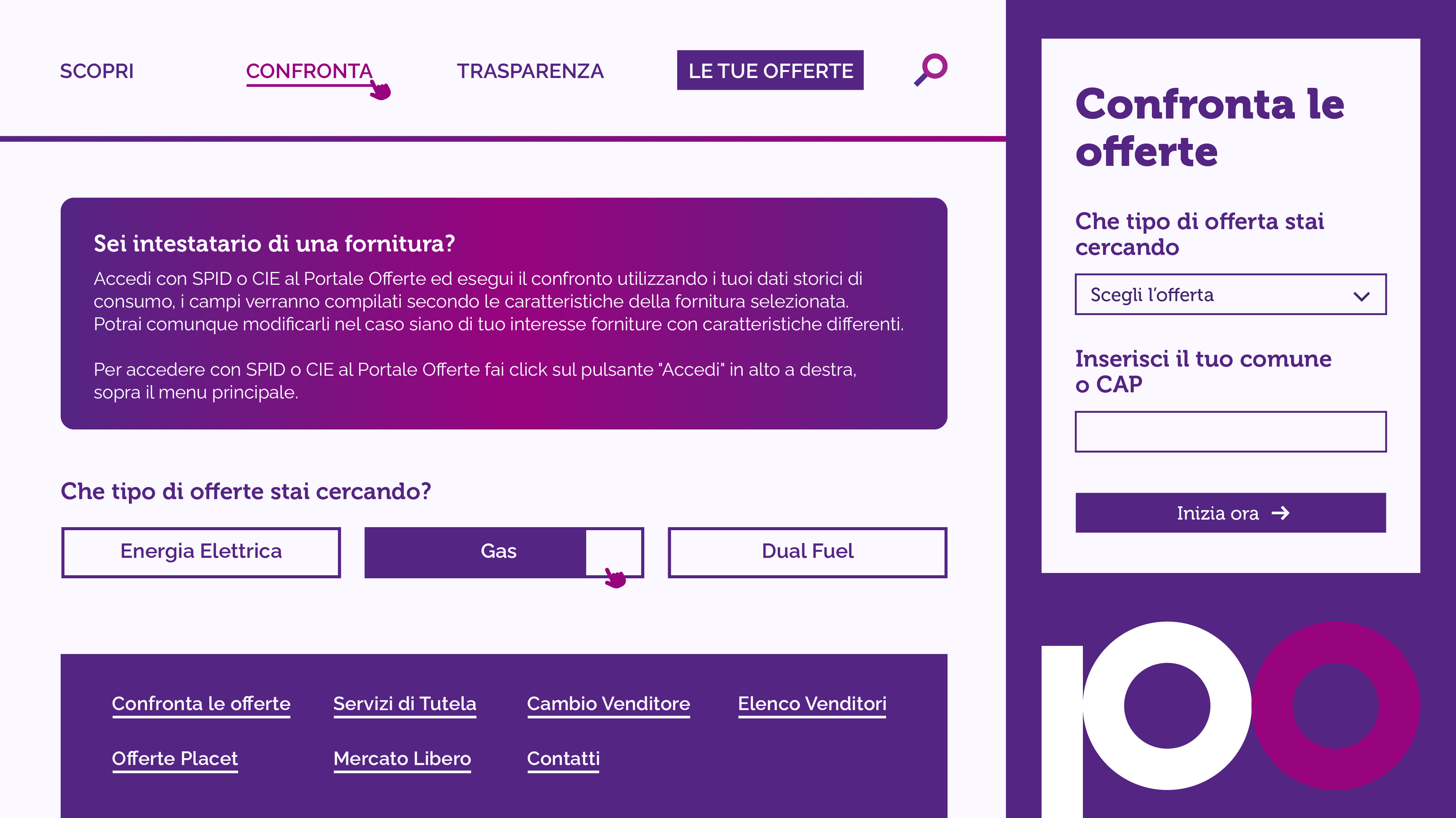 Abbiamo curato la progettazione e lo sviluppo del tool di comparazione dinamica delle offerte energetiche per il Portale Offerte: una web application completamente customizzabile, pensata per guidare l’utente nella scelta dell’offerta luce e gas più adatta, grazie a filtri avanzati e parametri di consumo personalizzabili.